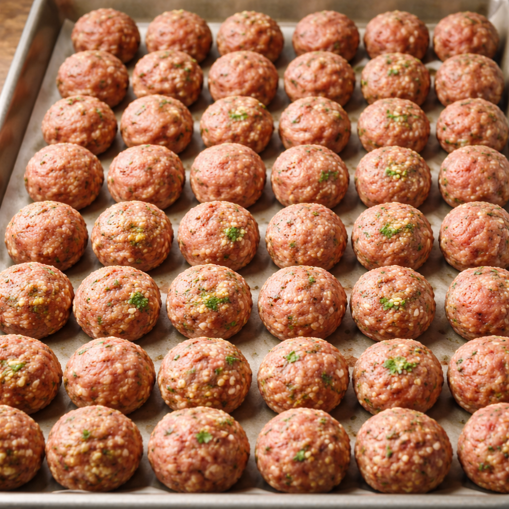 • Place meatballs onto a sheet pan (with rim to hold grease)