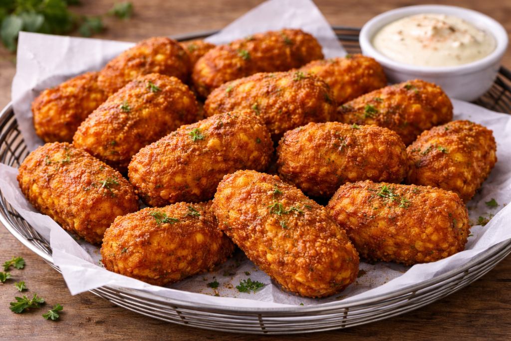 Roasted and shredded sweet potatoes come together to make the perfect tot. Garlic, onion, and cinnamon round out these savory nuggets. Air frying keeps the fat down while giving a great crispiness.