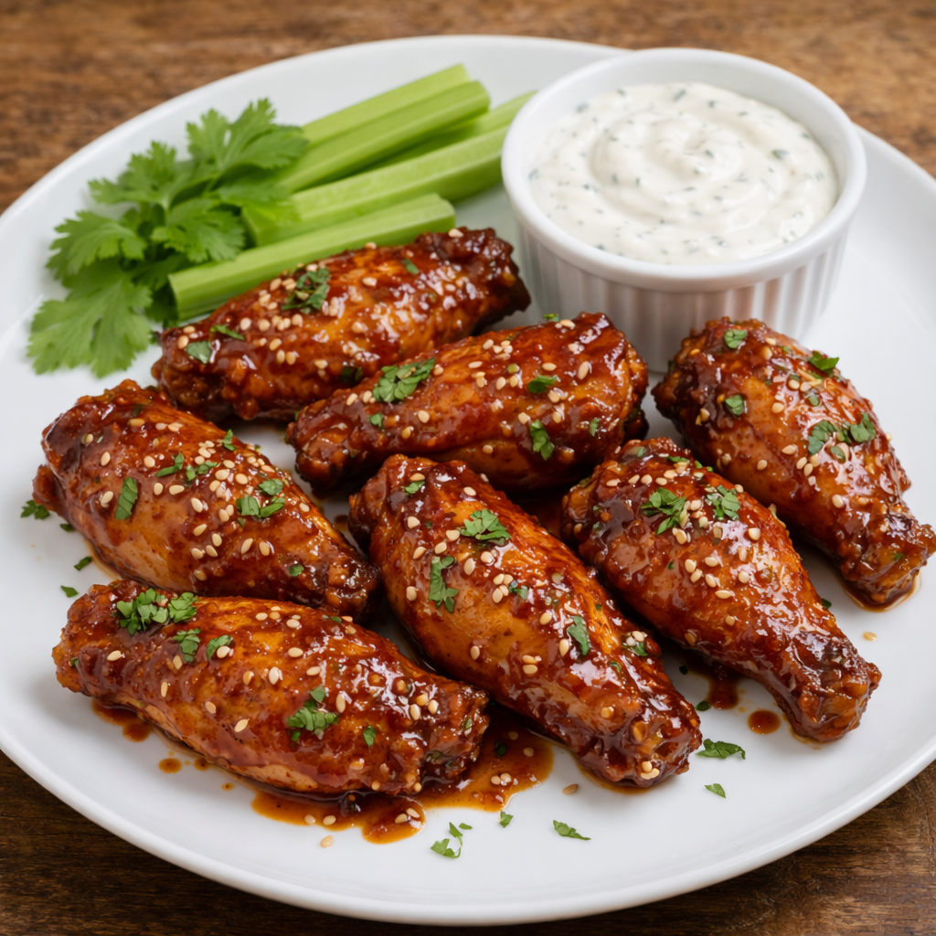 Air fried chicken wings sauced with a citrusy, tangy tamarind sauce, perfect for parties and game day. The tamarind paste and garlic substitutes for the typical nightshade based sauces giving these winds a bite that the whole family will love. Serve with Roadhouse Ranch.